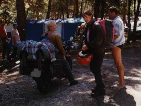 Seitenansicht mit Gepäck auf dem Weg nach Venedig anno 1996